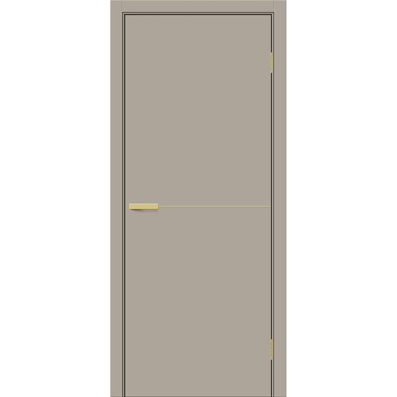 Межкомнатная глухая дверь щитовой конструкции с контрастными вставками и кромкой с 4 сторон, исполнение «П» (Премиум). Особенности: Композитный каркас двери облицован плитами высокой плотности толщиной 6 мм, что вдвое превышает стандартную толщину. Внутри жесткая и прочная панель Honeycomb Block. Торцы защищены износостойкой кромкой толщиной 1 мм по технологии «невидимого шва». Для кромкооблицовки и отделки лицевых поверхностей применяется влагостойкий PUR-клей необратимой полимеризации. Отделка: ПЭТ - инновационное покрытие c гладкой и приятной на ощупь поверхностью, устойчиво к повреждениям, не выцветает со временем. «Эмаль-эффект» - как эмаль, только лучше. Один из самых экологичных материалов (институт Fraunhofer IVV, Германия). Компания Bravo первой в России начала использовать 100% ПЭТ (без добавок) для промышленного производства дверей. Декор: Clay Silk — примерно соответствует RAL 7048, матовый (≈ 4,8 GU), SGold (SG) — золотые матовые вставки (P3). Комплектующие: Телескопические погонажные изделия для качественного регулируемого монтажа. Дверная коробка с TPE-уплотнителем для мягкого закрывания. Толщина, мм: 36 Масса брутто, кг: 23.5 Объем, куб.м: 0.072
