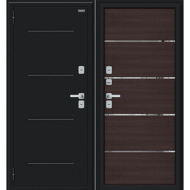 Стальной дверной блок Thermo Лайн/BChrome Букле черное/Wenge Melinga 205*86 левая энергосберегающей конструкции с двойным терморазрывом (термомостом) из натуральной пробки и четырехконтурным уплотнением. Поставляется с правым и левым открыванием наружу. Особенности: Стабильно точные геометрические показатели, которые обеспечиваются высокой степенью автоматизации и роботизации производства. Качество: Сертифицирован для РФ по ГОСТ 31173-2016. Наивысшие классы по эксплуатационным характеристикам (1) и прочности (М5). Сертификат POCC RU.SSK1.H00960/21. Высота/ширина, см: 205/86, 96 Марка стали: Высококачественная конструкционная углеродистая сталь (08пс). Отделка снаружи: Стальной лист с декоративным тиснением. Отделка внутри: Декоративная панель с возможностью замены. Толщина 6 мм, Эко Шпон, молдинги из нержавеющей полированной стали. Окраска: Индустриальная полиэфирная порошковая краска голландского концерна AkzoNobel. Толщина полотна/коробки, мм: 100/156 Толщина стали полотна/коробки, мм: 1,2/1,4 Ширина наличника, мм: 75 Регулировка: Блок укомплектован эксцентриком, правильная регулировка которого обеспечивает легкость открывания и беспрепятственную работу замковых механизмов. Уплотнение: Четыре контура высококачественного EPDM-уплотнителя (Швеция). Утепление полотна: Терморазрыв (термомост) из натуральной пробки по периметру полотна. Внутри полотна установлена конструкционная теплоизоляционная панель SIP (Structural Insulated Panel), которая не только обеспечивает необходимую тепло- и шумоизоляцию, но и придает дополнительную жесткость и прочность дверному блоку. Утепление коробки: Терморазрыв (термомост) из натуральной пробки между внутренним и наружным профилями коробки. Внутри коробки установлен эффективный тепло- и шумоизоляционный материал из вспененного полиэтилена ламинированного металлизированной пленкой с алюминиевым напылением (фольгой) - Broflex. Тип коробки: Открытый Усиление: Семь усиливающих уголков и защитный карман для замков. Дополнительную стойкость ко взлому обеспечивают два противосъемных штыря. Крепление: Блок крепится анкерными болтами через коробку (8 отверстий) или с использованием монтажных пластин (6 шт. в комплекте). Упаковка: Пятислойный гофрированный картон марки П-32, полипропиленовые ленты (стреппинг). Внимание: Перед дверью должен быть предусмотрен тамбур или козырек шириной от 1800 мм и вылетом от стены не менее 1500 мм. Монтаж блока осуществляется с использованием в местах примыкания наличника к стене паропроницаемой саморасширяющейся уплотнительной ленты (ПСУЛ) шириной от 20 мм и плотностью не менее 30 кг/куб.м. Масса брутто, кг: 76 Объем, куб.м: 0.14 Кол-во в упаковке/паллете: вертикальная загрузка. Вместимость в фуру, шт.: 162,5