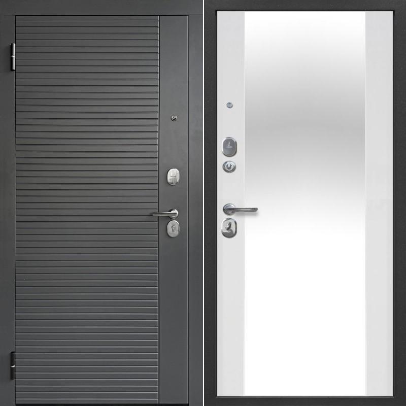 Металлическая Входная дверь Гарда 7 см 2 МДФ Линии Зеркало Сатин графит / Эмалит Белый 205*86 левая